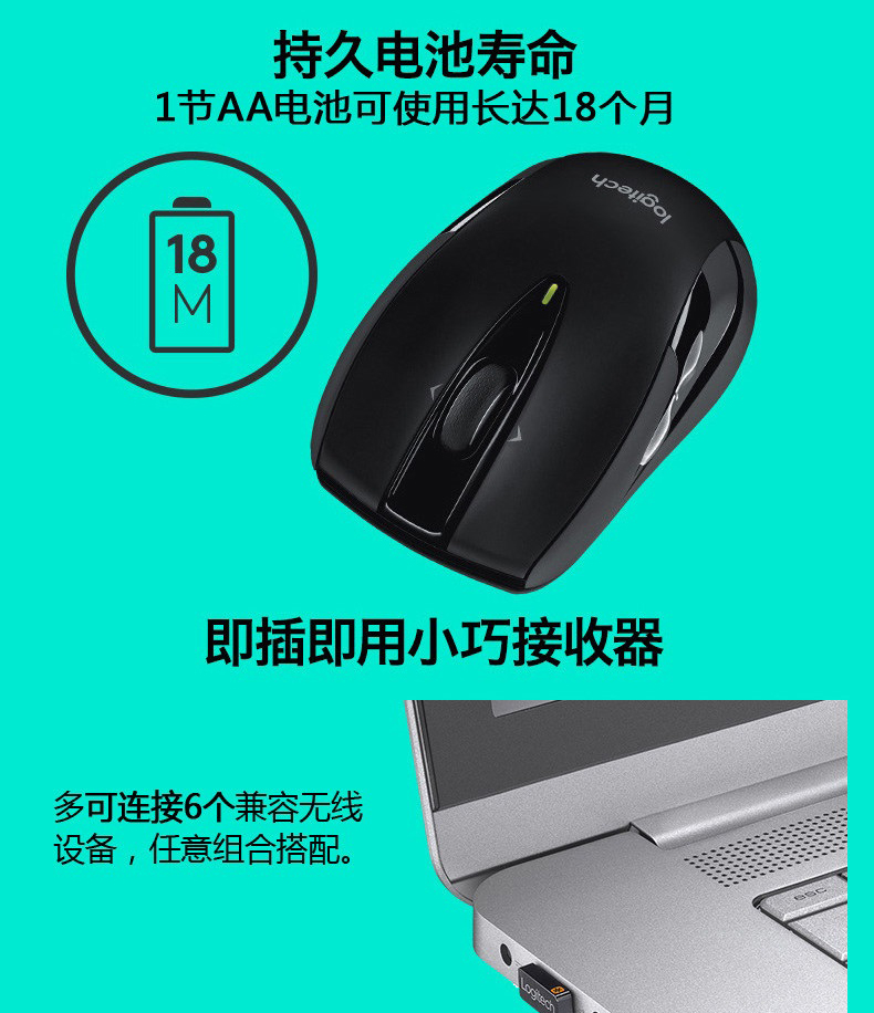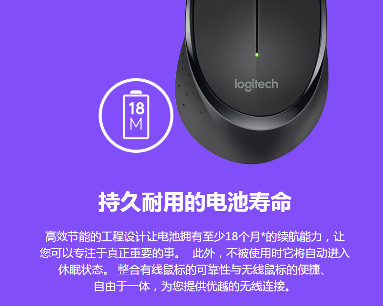 罗技(Logitech)M275鼠标 无线鼠标 办公鼠标 右手鼠标 黑色 带无线2.4G接收器