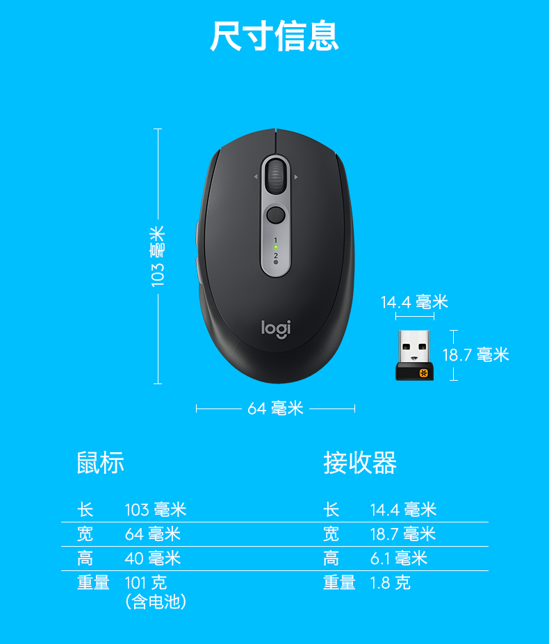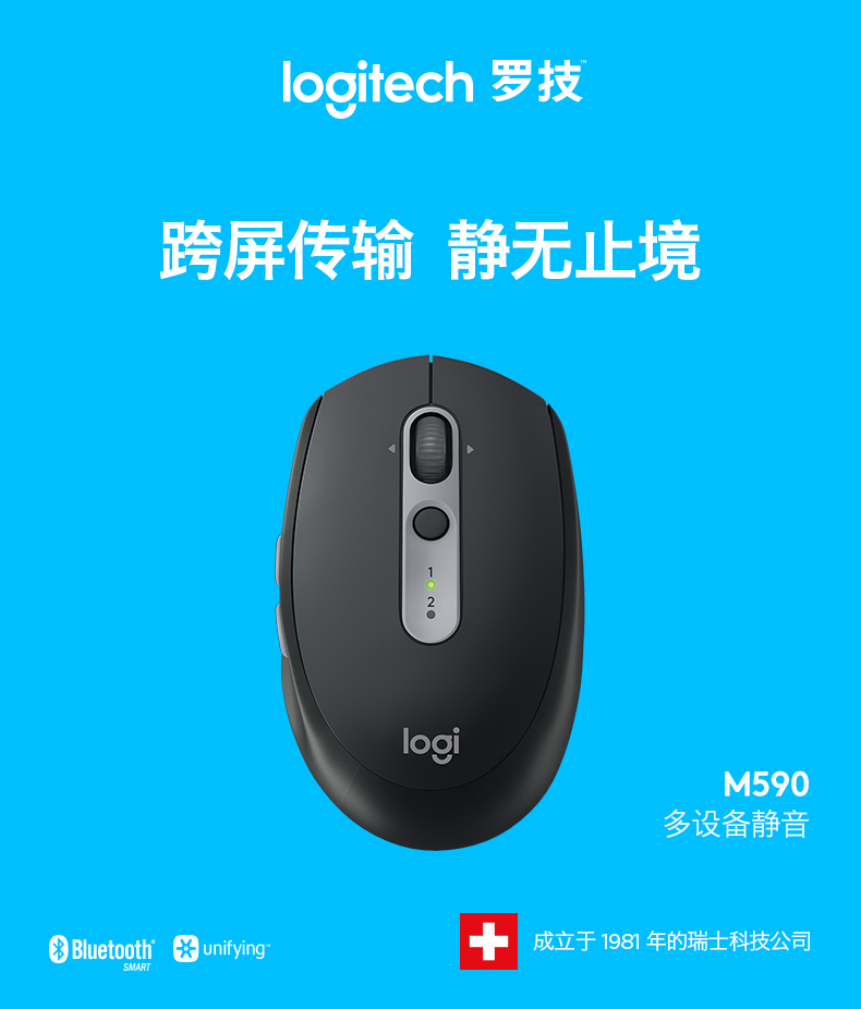 罗技(Logitech)M590静音鼠标 无线蓝牙鼠标 办公鼠标 对称鼠标 带优联接收器 石墨黑