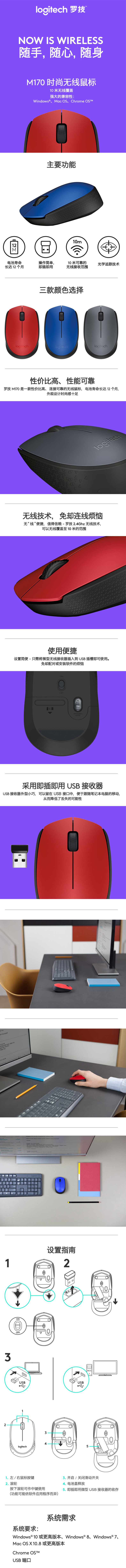 罗技(Logitech)M170无线鼠标 灰色