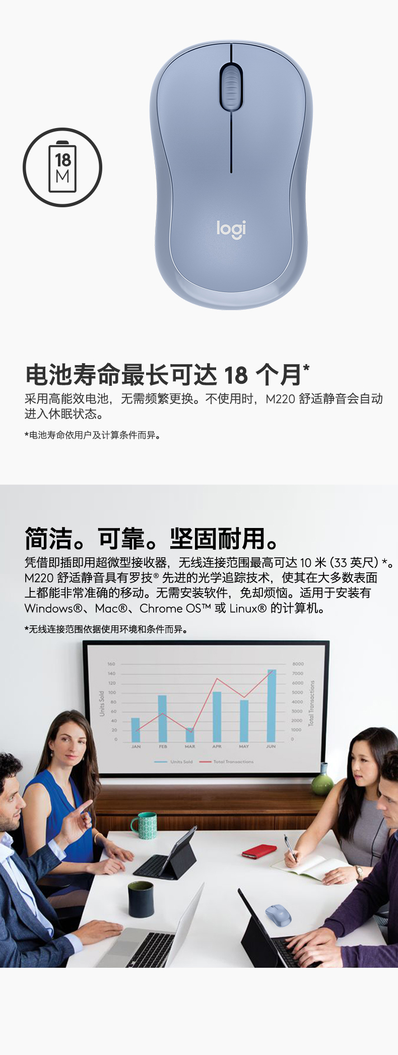 罗技(Logitech)M221无线静音鼠标光电USB家用商务办公台式机笔记本电脑 米白色