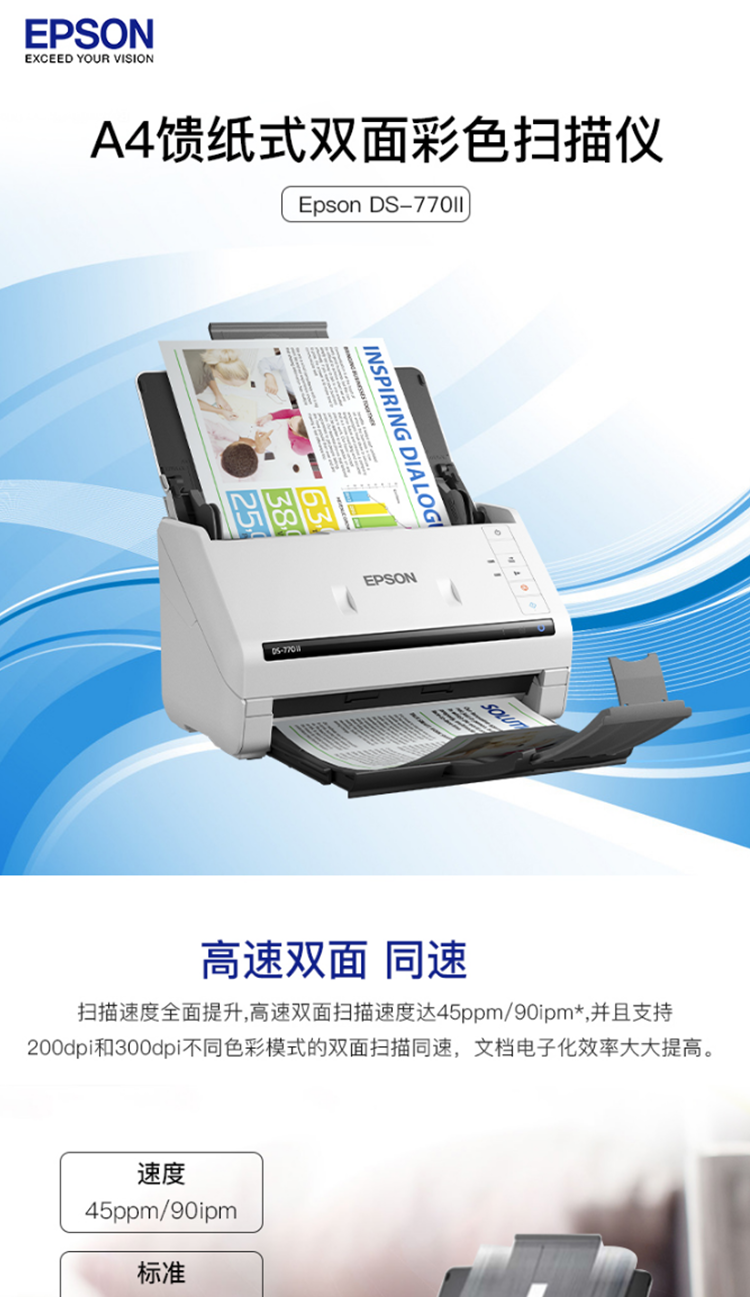 爱普生(EPSON)DS-770II A4馈纸式高速彩色文档扫描仪