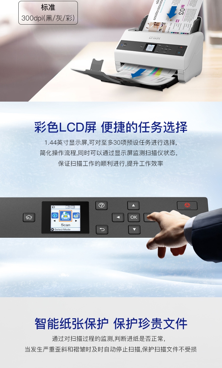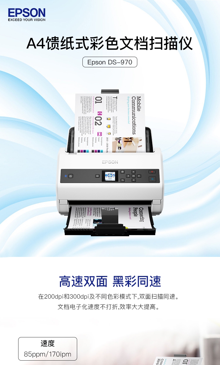 爱普生(EPSON)DS-970 A4馈纸式高速彩色文档扫描仪 双面扫描/85ppm (原厂三年保修)