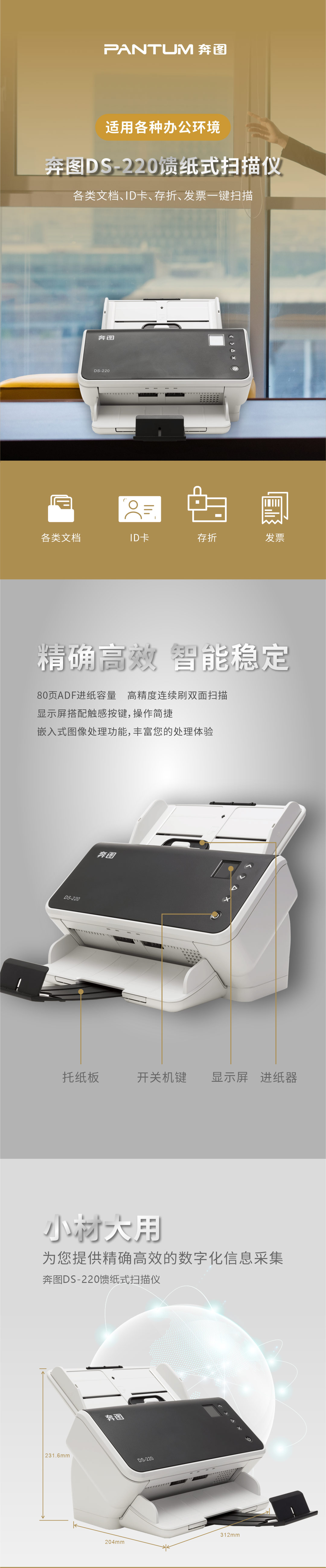 奔图(PANTUM) DS-220彩色高速扫描仪(30页每分钟/馈纸式/高清专业级)