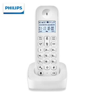 飞利浦 PHILIPS 数字无绳电话机/无线座机/单主机 白色屏幕背光 高清免提 家用办公 DCTG160(白色)