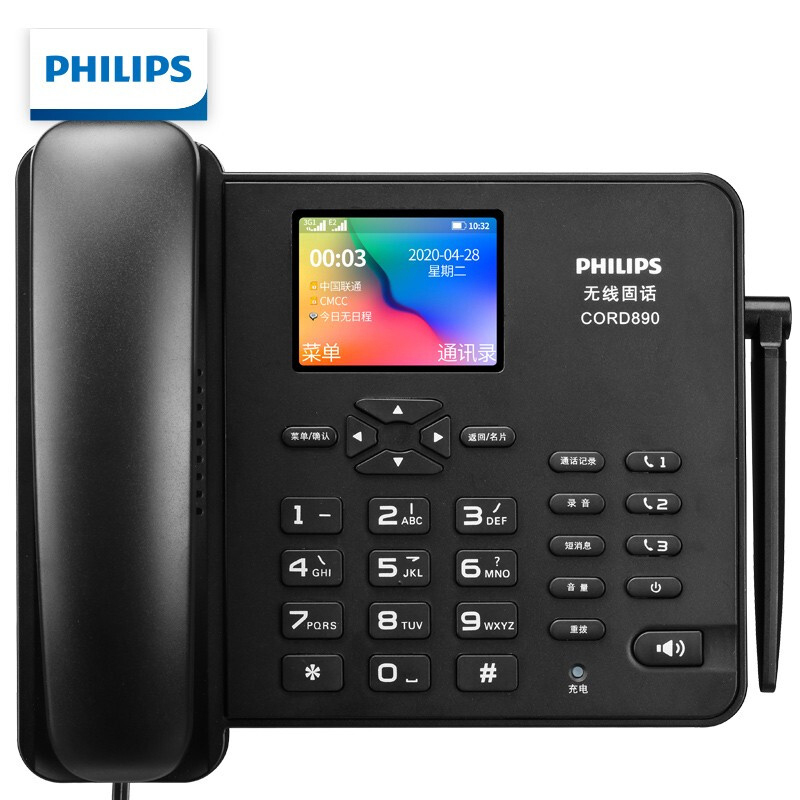 飞利浦(PHILIPS)插卡电话机 移动/联通固定插卡 自动录音座机 中文菜单 CORD890 黑色普通版