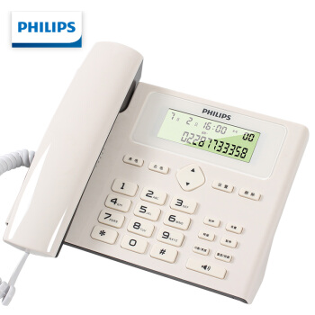 飞利浦(PHILIPS)电话机座机 固定电话 办公家用 免电池 来电显示 双插孔 CORD022 (白色)