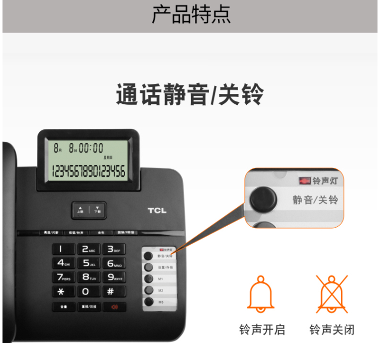 TCL 电话机座机 固定电话 办公家用 大屏幕 来电显示 免电池 HCD868(66)TSD 黑色