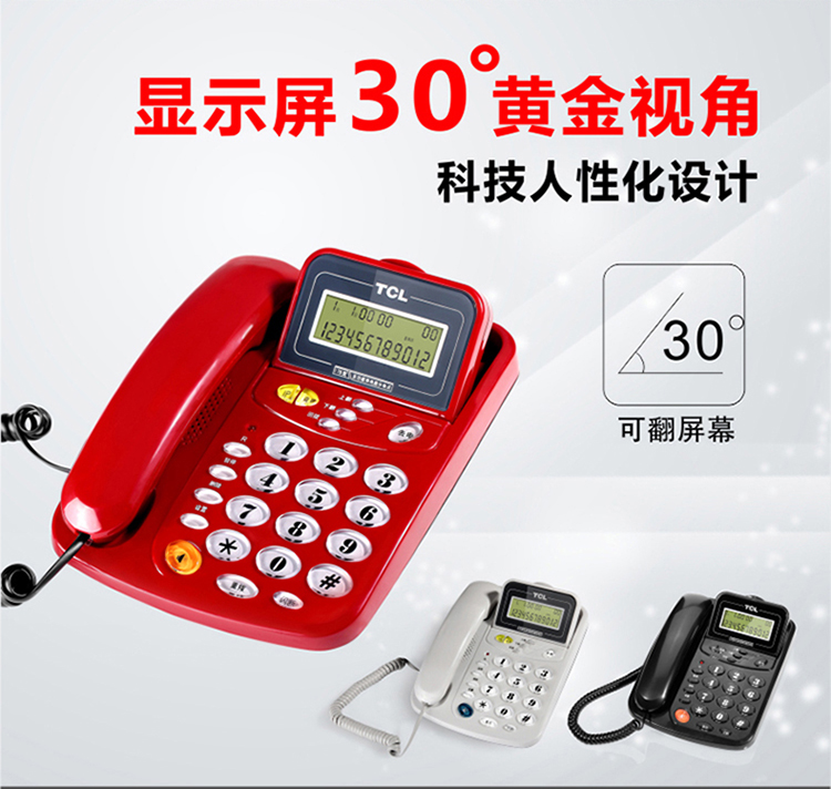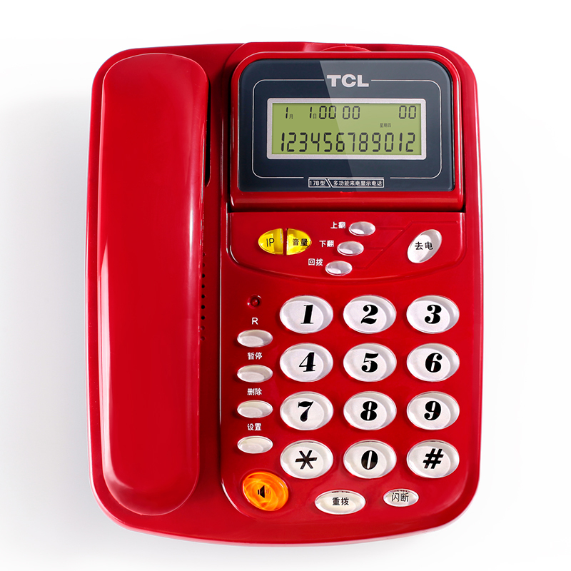 TCL HCD868(17B)TSD固定有绳电话机座机来电显示免电池免提屏幕翻转座式壁挂家用办公有绳固话(火红)