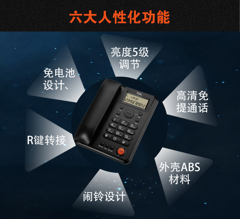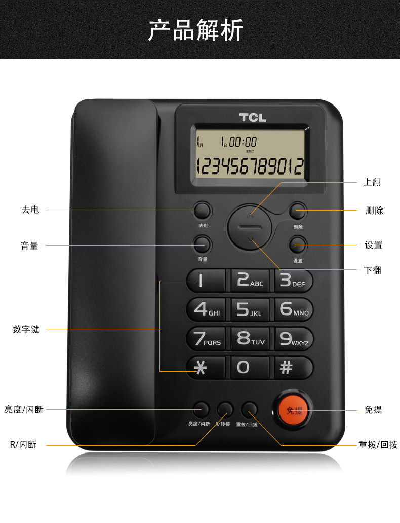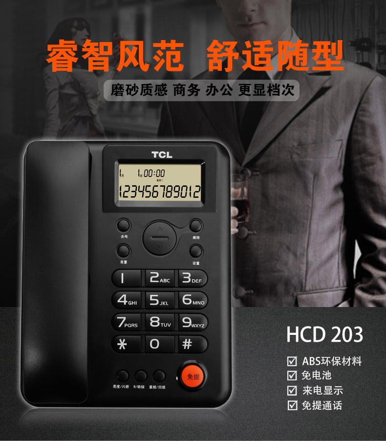 TCL电话机HCD868(203)TSD(海鸥白)电话机家用办公座式机 家用固定电话座机大音量双接口免电池有绳话机