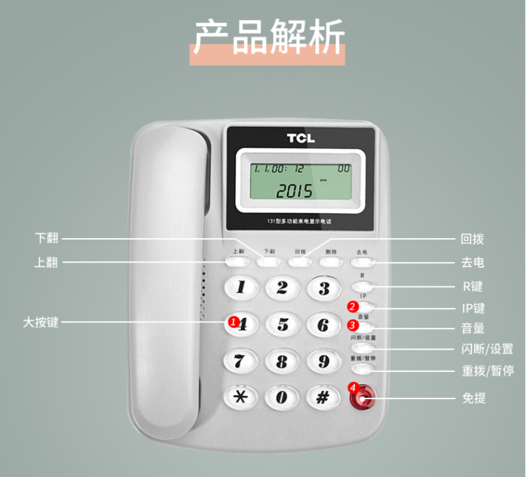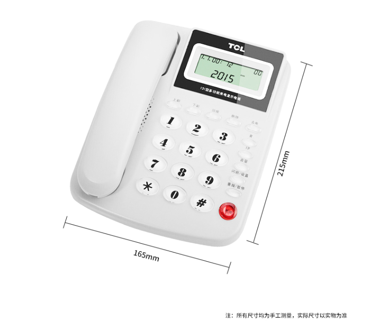 TCL 电话机座机 固定电话 办公家用 来电显示 免电池 免提 HCD868(131)TSD (白色)