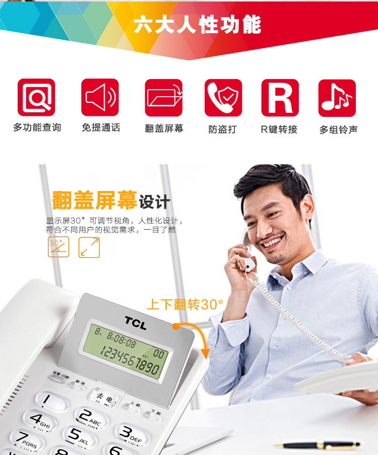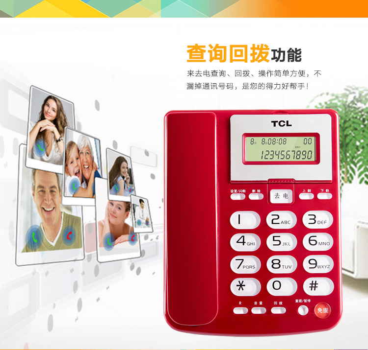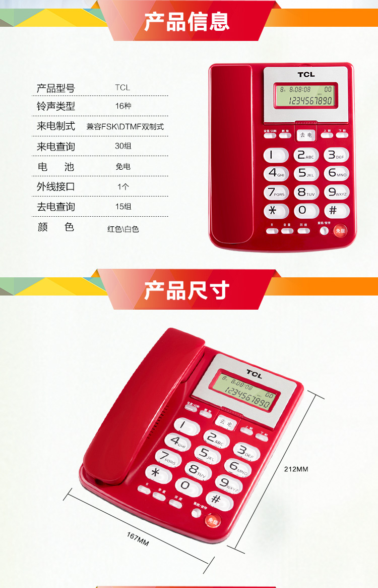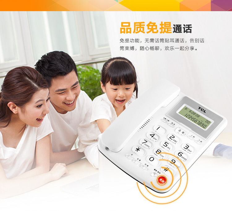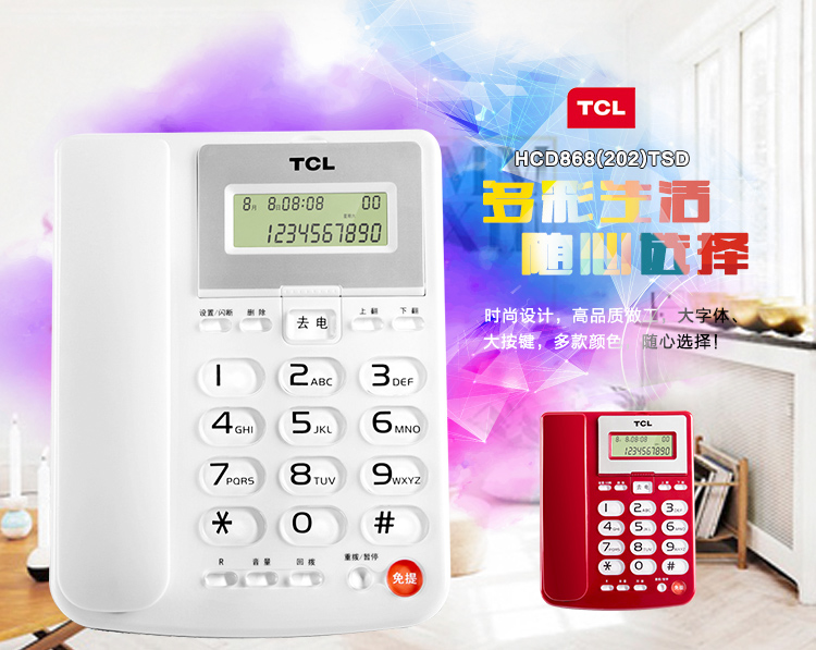 TCL 电话机座机 固定电话 办公家用 双接口 免电池 大按键 HCD868(202)TSD (雅致白)