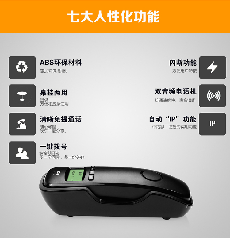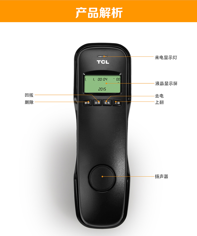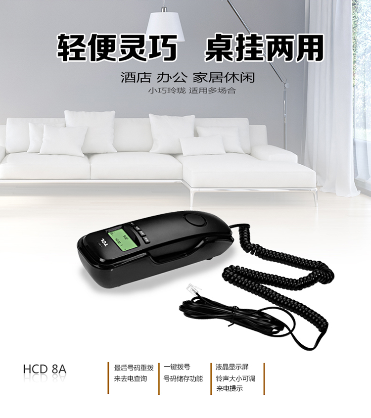 TCL HA868(8A)固定有绳电话机座机小挂机电梯卫生间厨房一键拨号座式壁挂酒店家用有绳固定座机(白色)