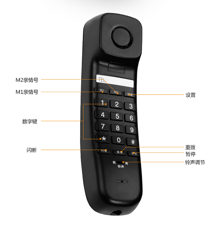TCLHA868(8A)固定有绳电话机座机小挂机电梯走廊卫生间厨房座式壁挂酒店家用固定座机(黑色)