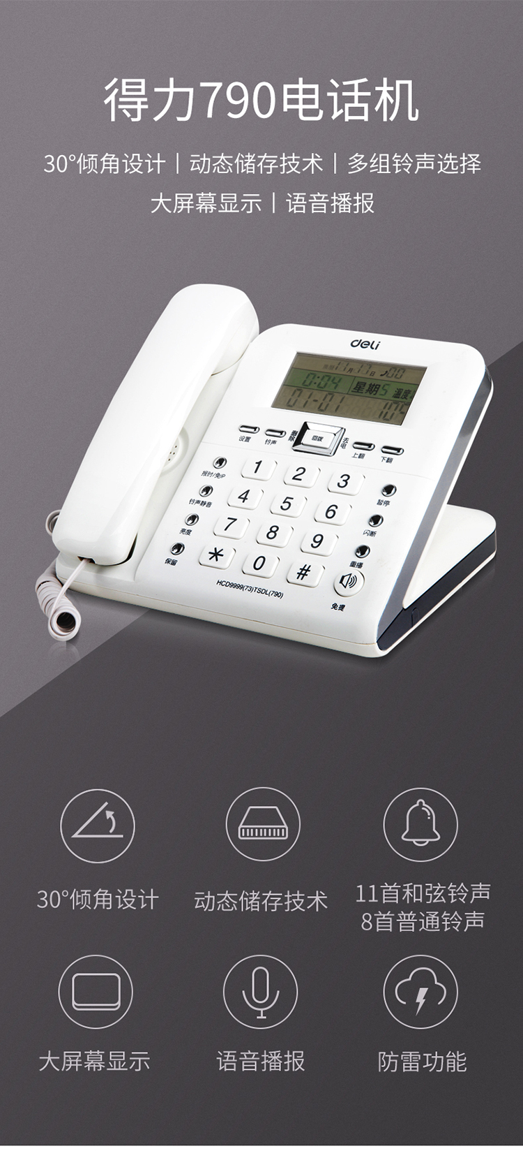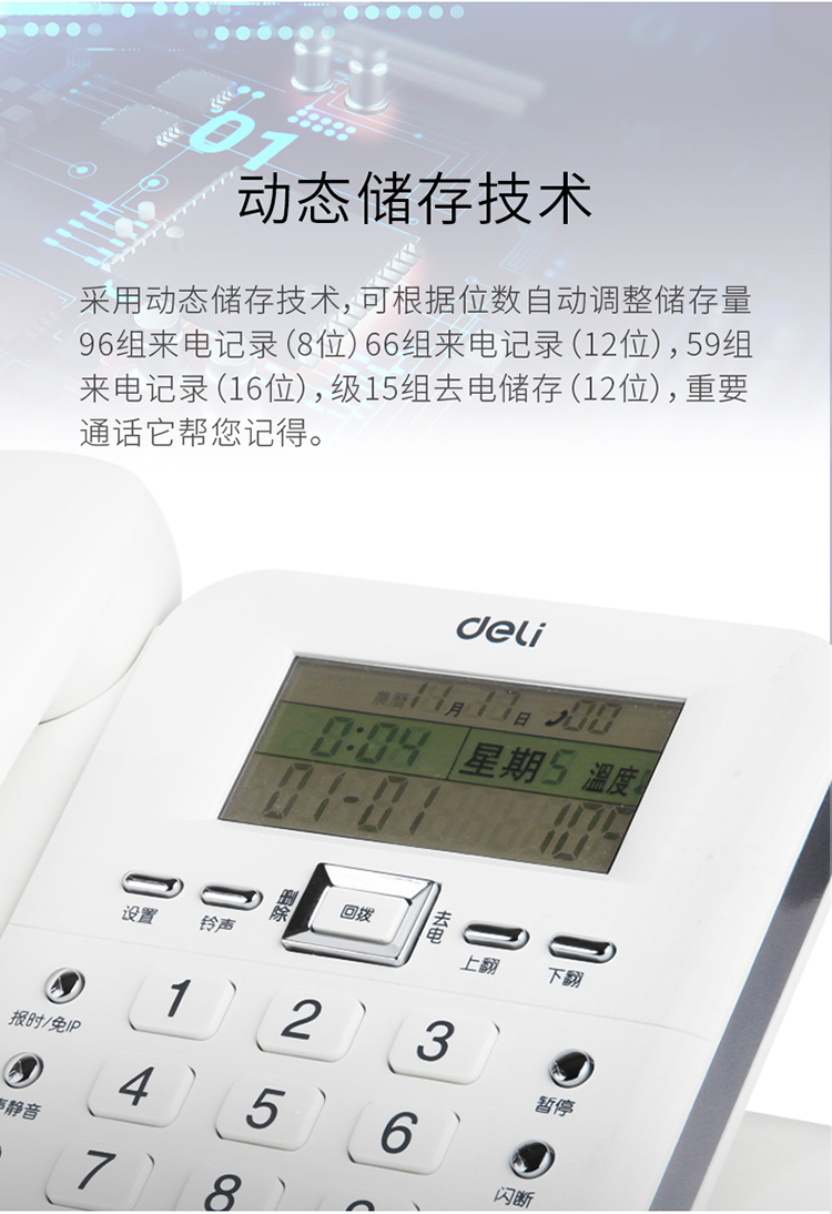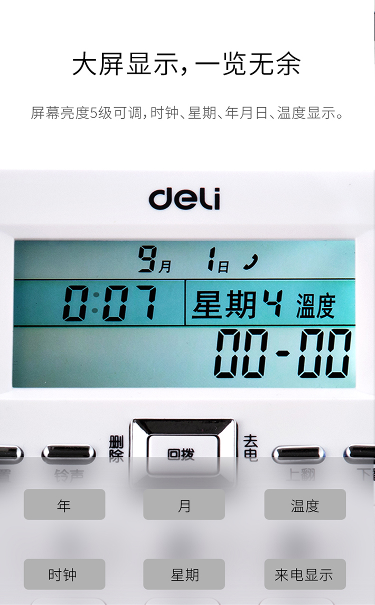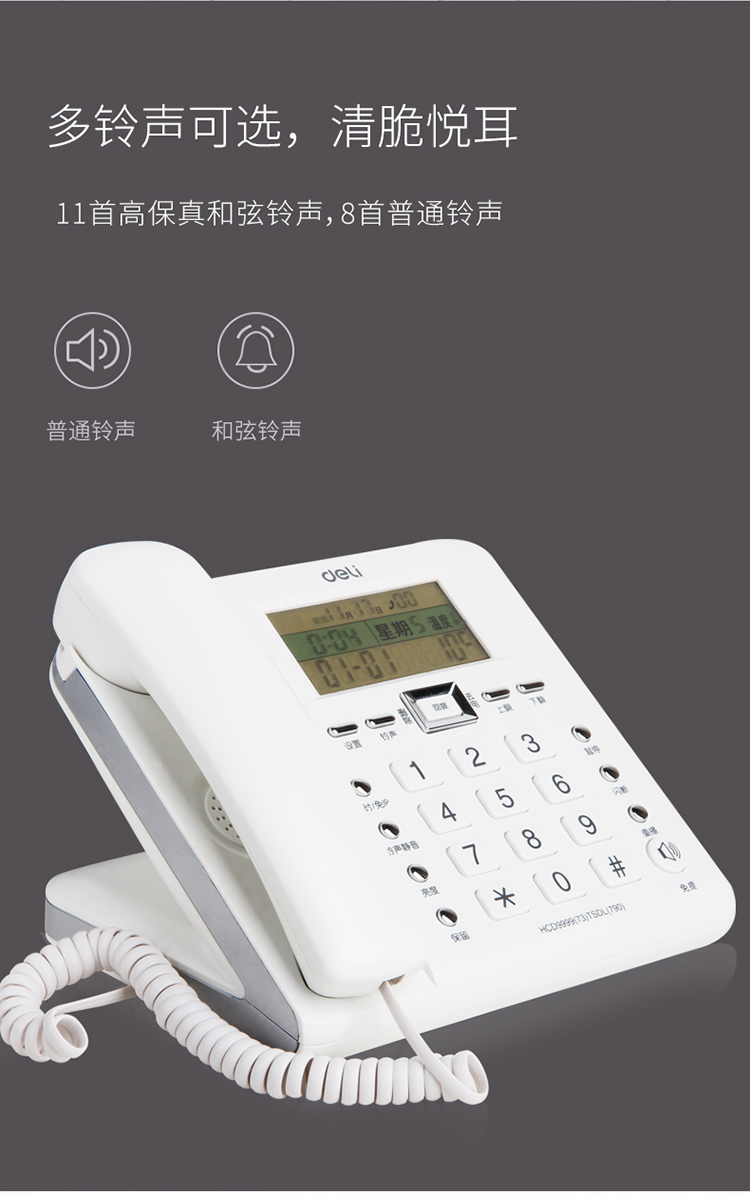 得力(deli) 电话机座机 固定电话 办公家用 30°倾角 来电显示 790白