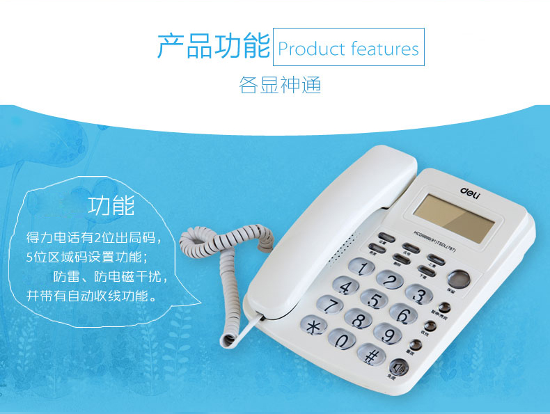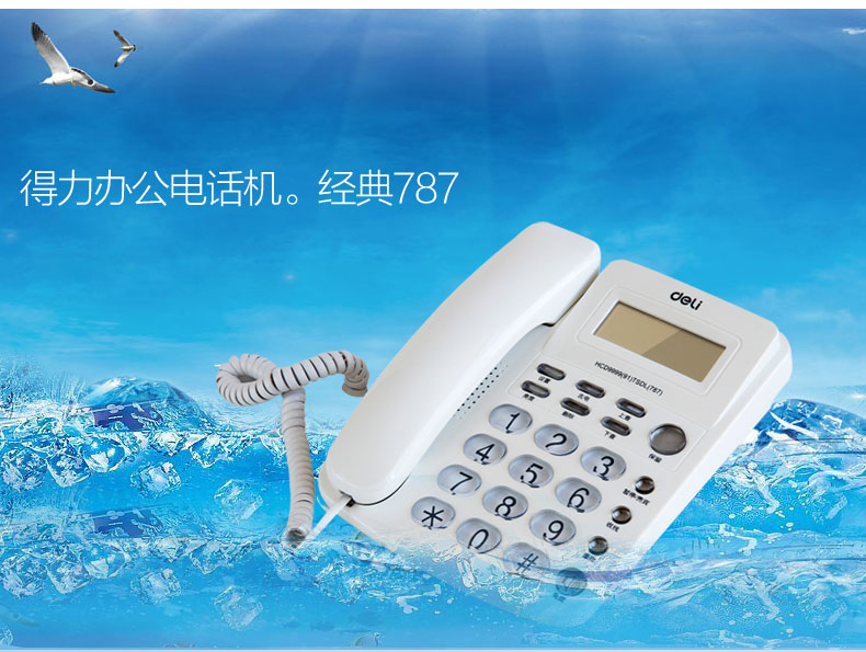 得力(deli)电话机座机 固定电话 办公家用 大容量存储 防雷、抗电磁干扰 787 白