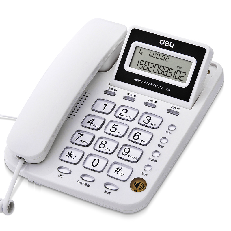 得力(deli)电话机座机 固定电话 办公家用 翻转屏幕 免电池 781白