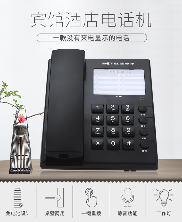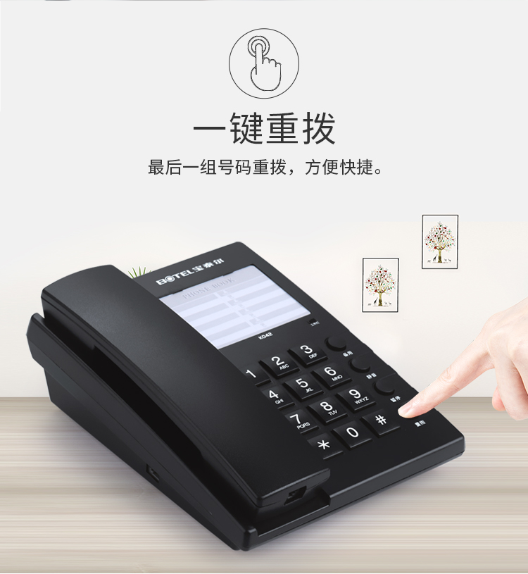 宝泰尔(BOTEL)电话机座机 固定电话 办公家用 无屏桌壁两用/一键重拨 K042 黑色