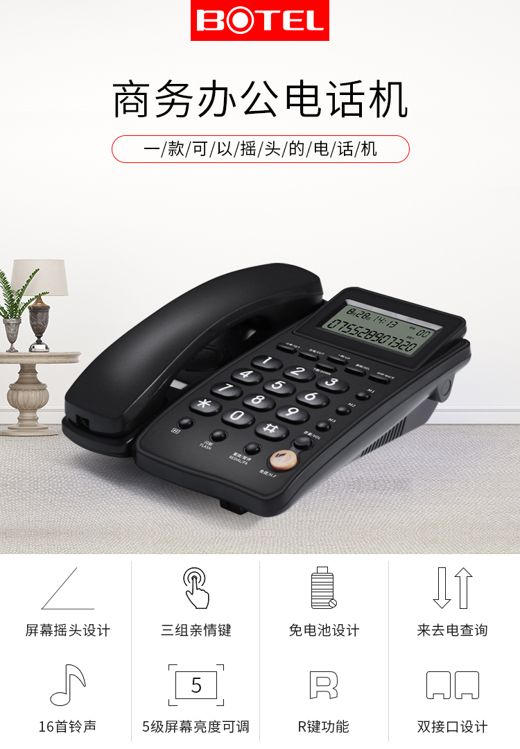 宝泰尔(BOTEL)电话机座机 固定电话 办公家用 屏幕可摇头/快捷拨号 T257 黑色
