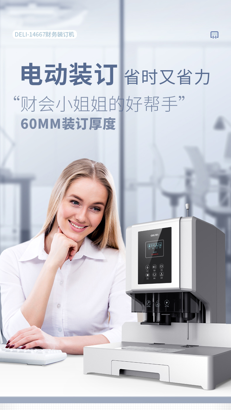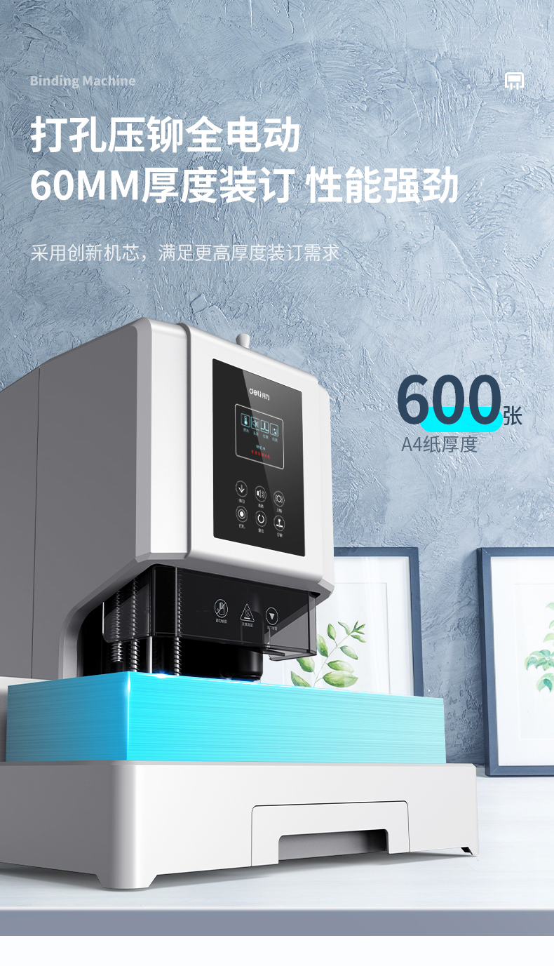 得力(deli)20新款600页自动财务凭证装订机 会计凭证文件资料档案打孔机热熔胶管 加强电机14667