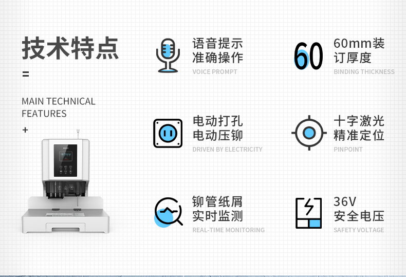 得力(deli)T504 激光定位自动会计财务凭证装订机 热熔胶铆管装订机电动档案文件打孔机