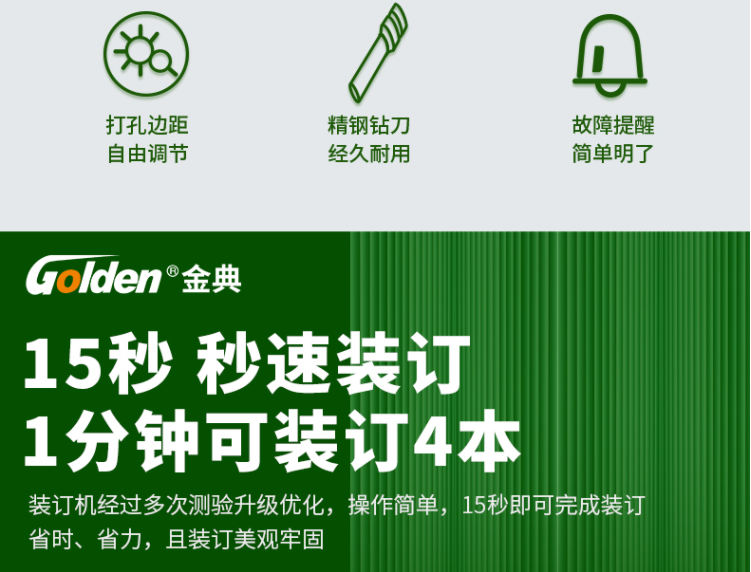 金典 GOLDEN GD-N6518装订机自动凭证财务装订机 激光定位 50MM厚度