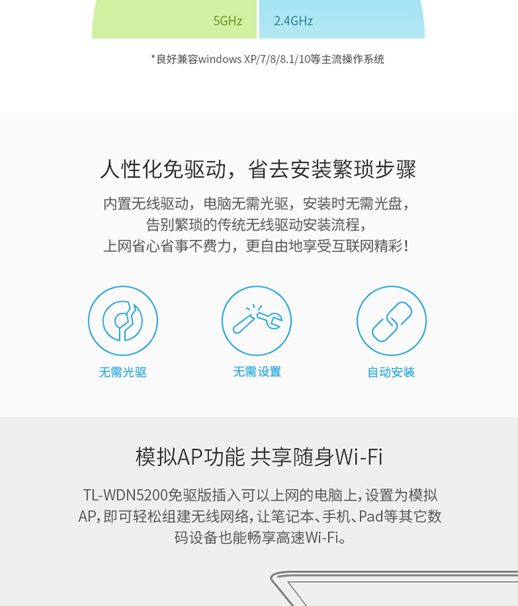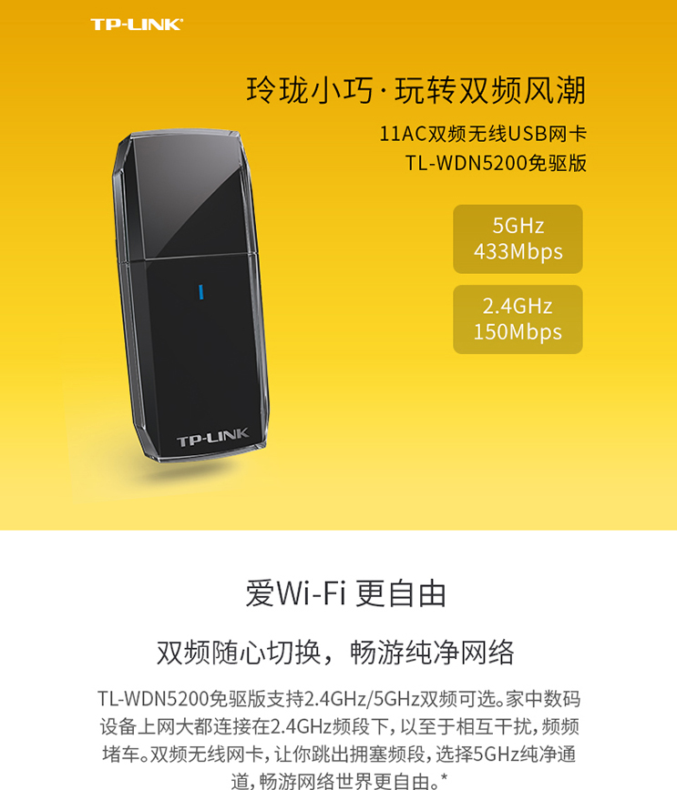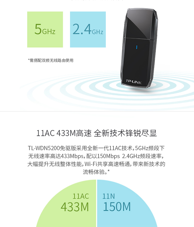 TP-LINK USB无线网卡 TL-WDN5200免驱版 AC650双频5G迷你网卡 笔记本台式机电脑无线接收器随身WiFi发射器