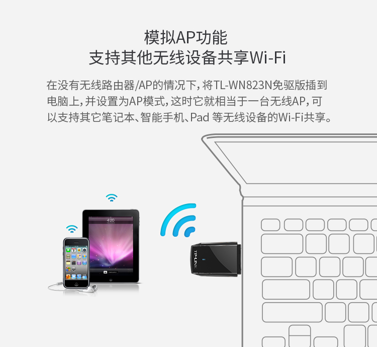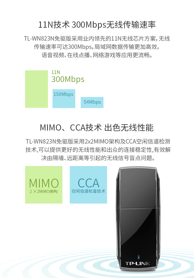 TP-LINK USB无线网卡免驱动 台式机笔记本电脑无线WiFi接收器发射器随身wifi TL-WN823N免驱版