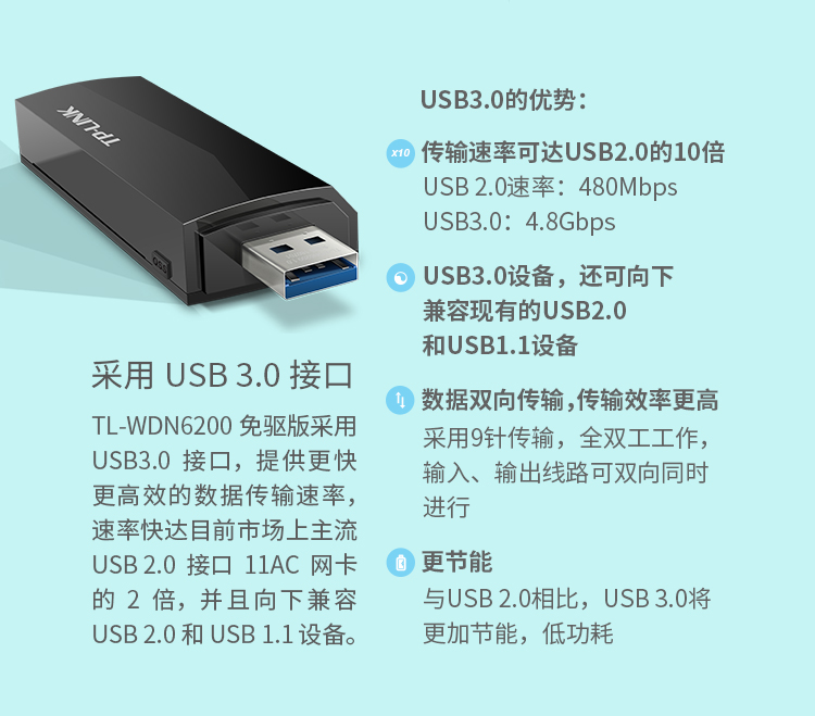 TP-LINK TL-WDN7201H 1900M穿墙千兆双频USB无线网卡 台式机笔记本随身wifi接收器 高增益 USB3.0