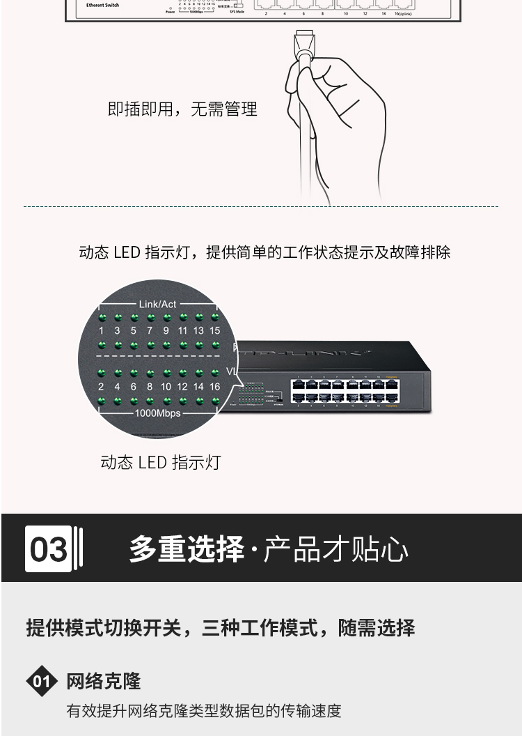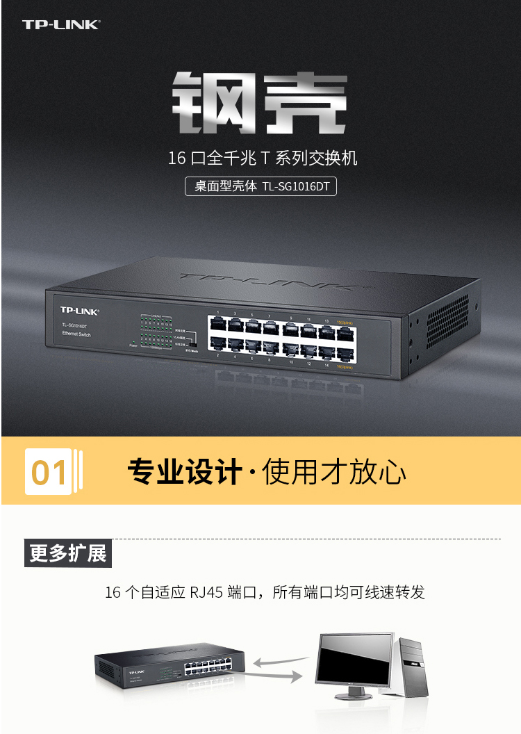 TP-LINK 16口全千兆交换机 非网管T系列 企业级交换器 监控网络网线分线器 分流器 TL-SG1016DT
