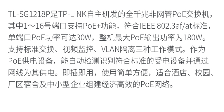 TP-LINK TL-SG1218P 16口千兆POE交换机 16GE(PoE)+2GE