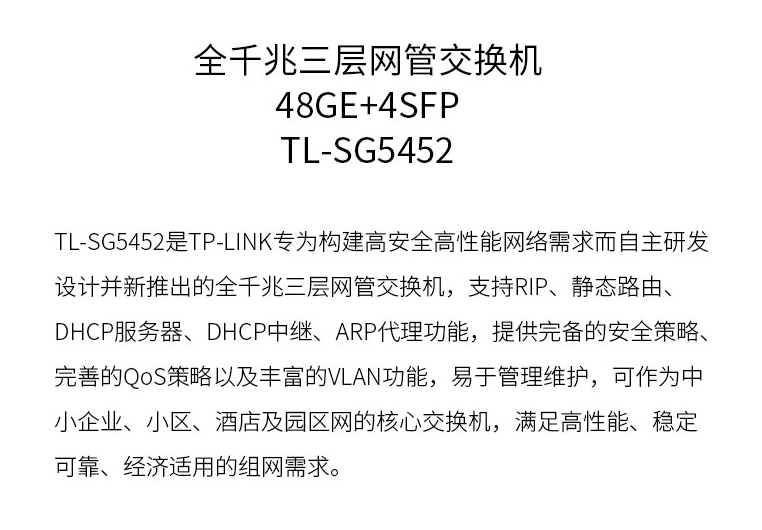 TP-LINK TL-SG5452 48口千兆三层网管型核心交换机 4千兆光纤口