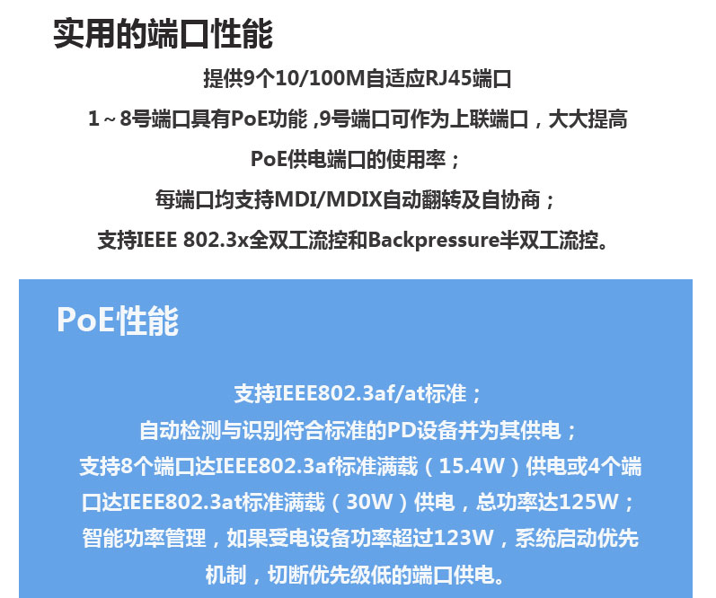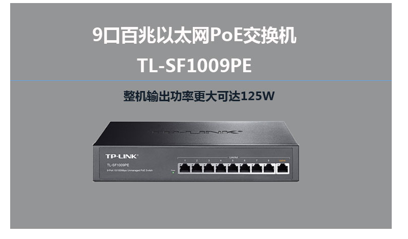TP-LINK SF1009PE 9口百兆8口POE非网管PoE交换机 功率增强型