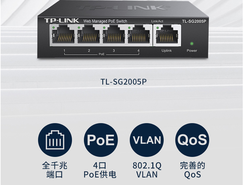 TP-LINK 5口千兆PoE交换机 4口PoEWeb网管交换机 监控网络网线分线器 TL-SG2005P