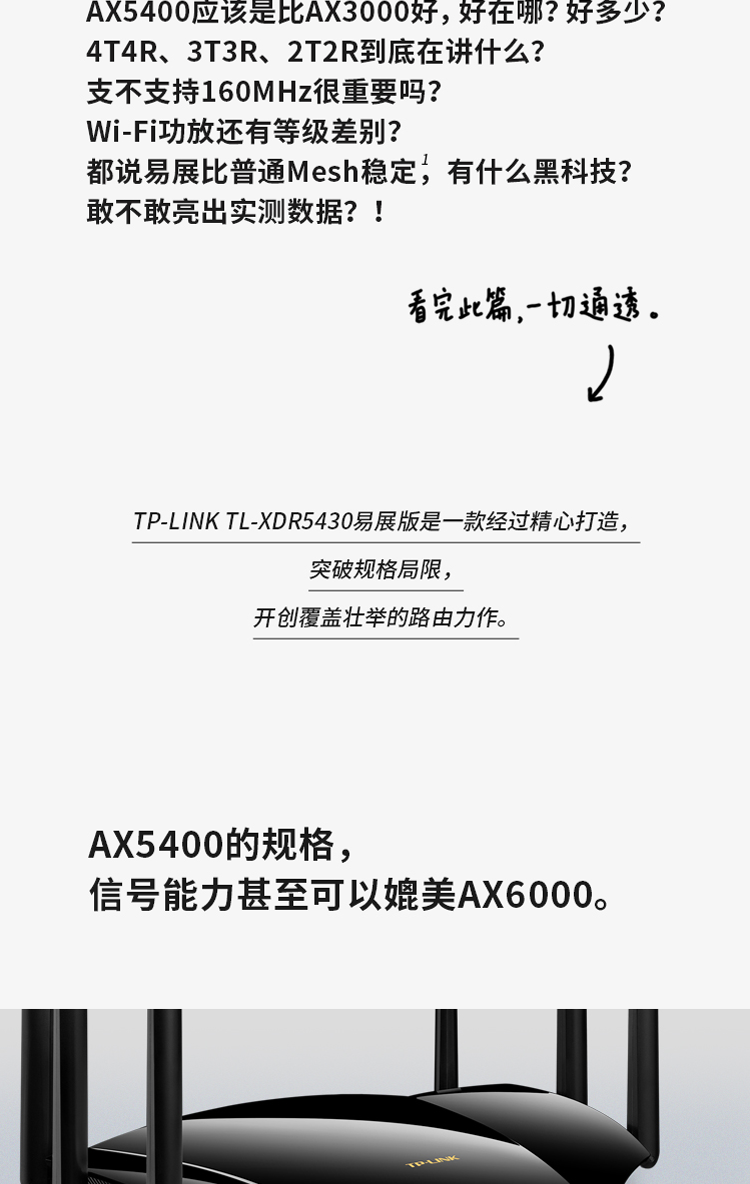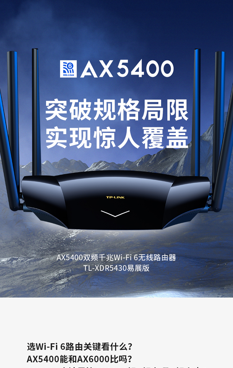 TP-LINK AX5400千兆无线路由器 WiFi6 5G双频高速网络 Mesh路由 游戏路由 智能家用穿墙 XDR5430易展版