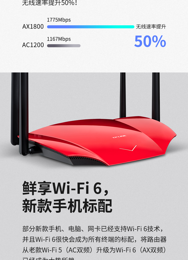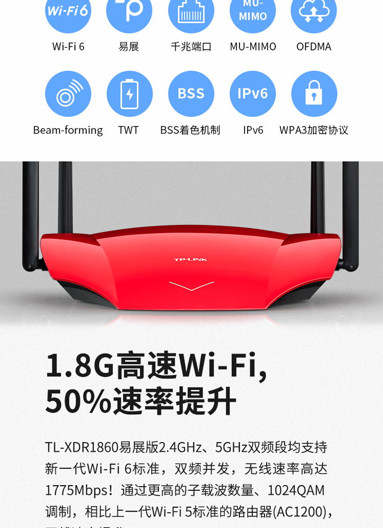 TP-LINK WiFi6 5G双频全千兆 无线家用 高速网络 易展Mesh 分布式路由器 XDR1860易展版