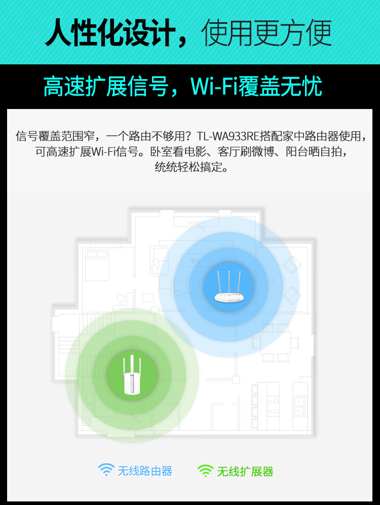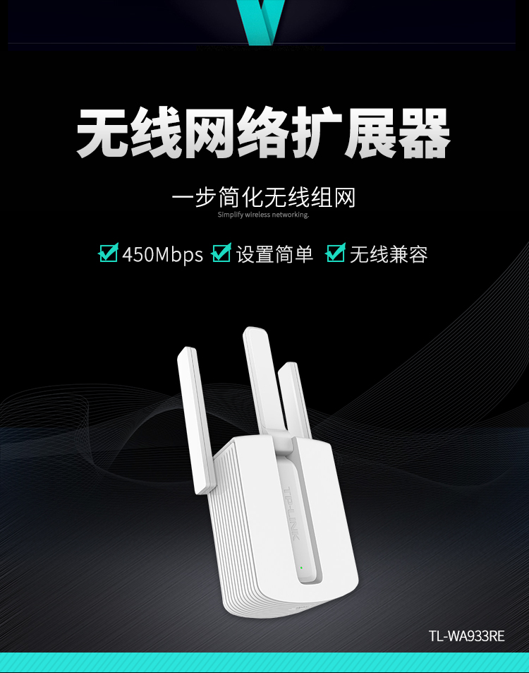 TP-LINK TL-WA933RE 450M三天线wifi信号放大器 无线扩展器中继器 家用路由器无线信号增强器