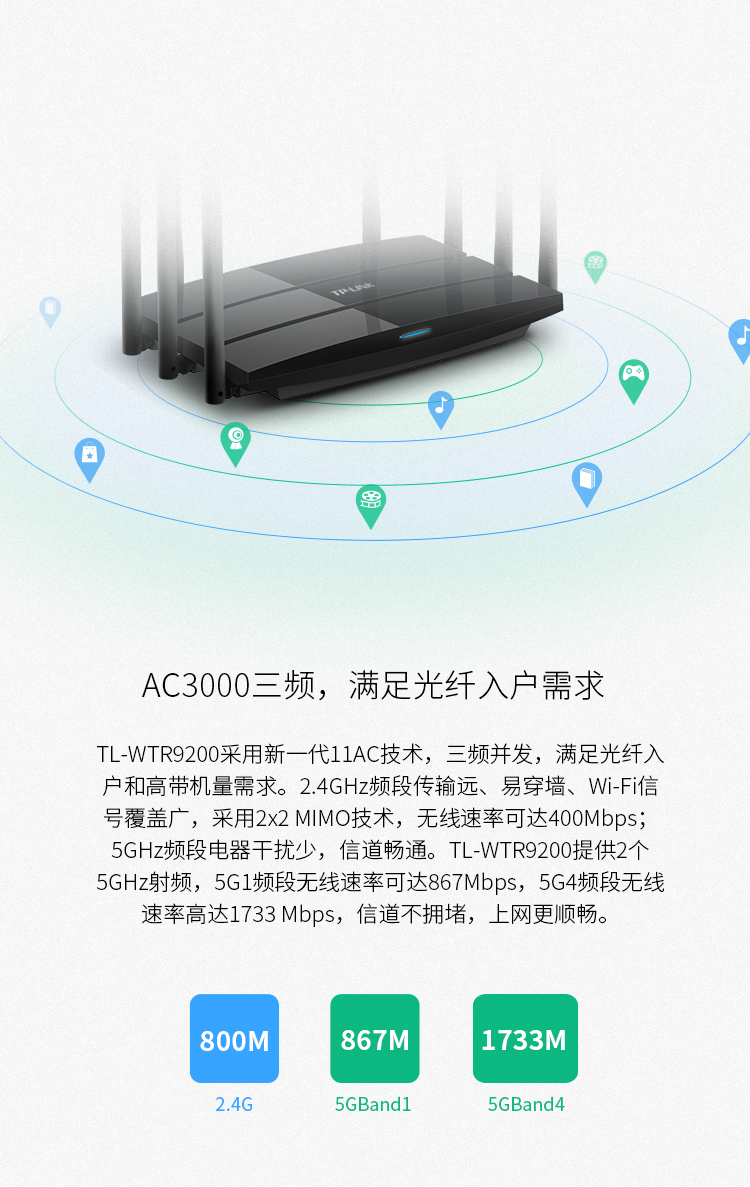 TP-LINK TL-WTR9200 智能11AC三频千兆无线路由器 光纤宽带大户型穿墙