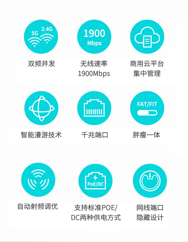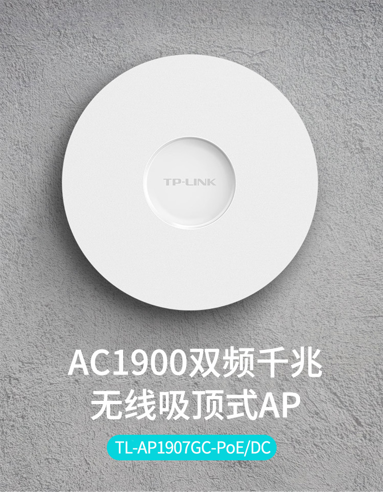 TP-LINK 1900M双频千兆无线吸顶AP 企业级酒店别墅wifi接入 TL-AP1907GC-PoE/DC