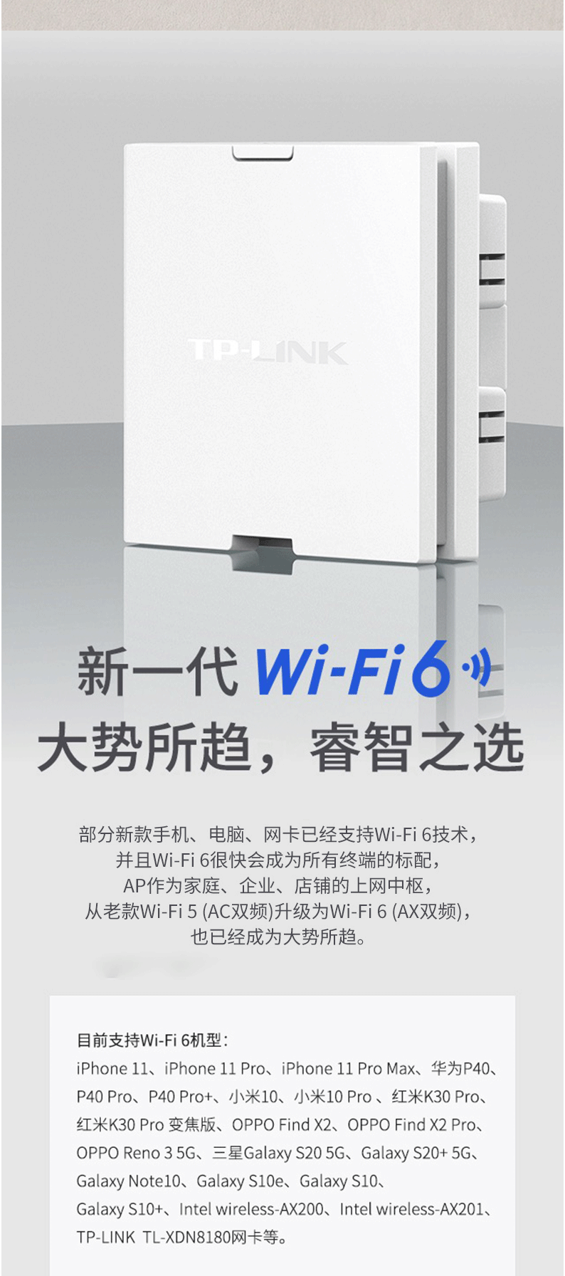 TP-LINK AX1800双频千兆Wi-Fi6面板AP 企业酒店别墅wifi无线接入点 PoE供电AC管理 TL-XAP1800GI-PoE深空银
