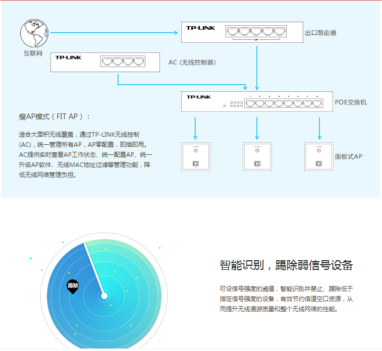 TP-LINK AP450I-POE 450M无线86型面板式AP 企业级酒店别墅wifi接入 POE供电 AC管理
