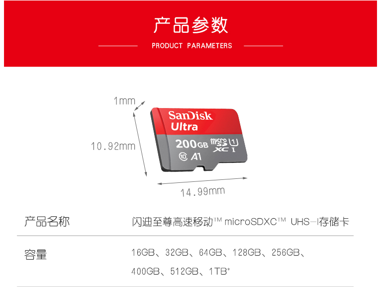闪迪(SanDisk)200GB TF(MicroSD)存储卡 U1 C10 A1 至尊高速移动版内存卡 读速120MB/s 广泛兼容