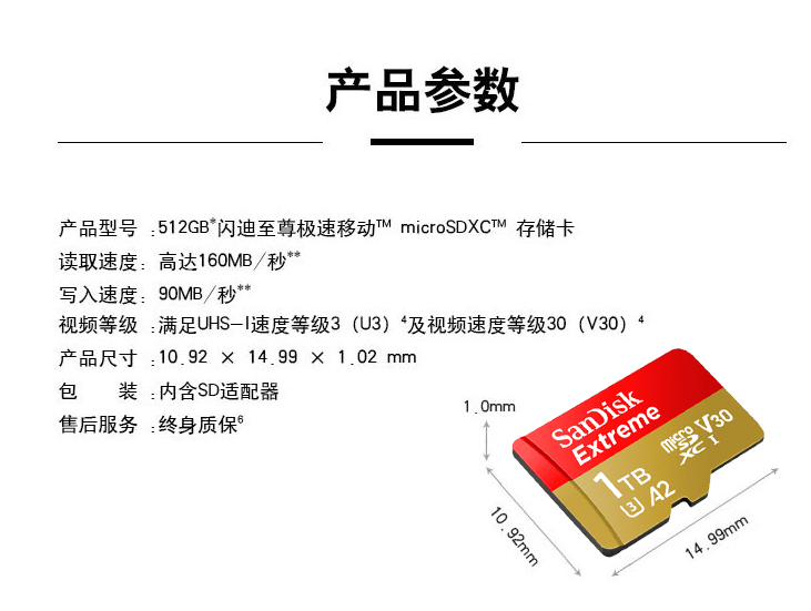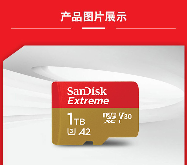 闪迪(SanDisk)A2 1TB TF(MicroSD)存储卡 V30 U3 4K 至尊极速移动版内存卡 读速160MB/s 写速90MB/s