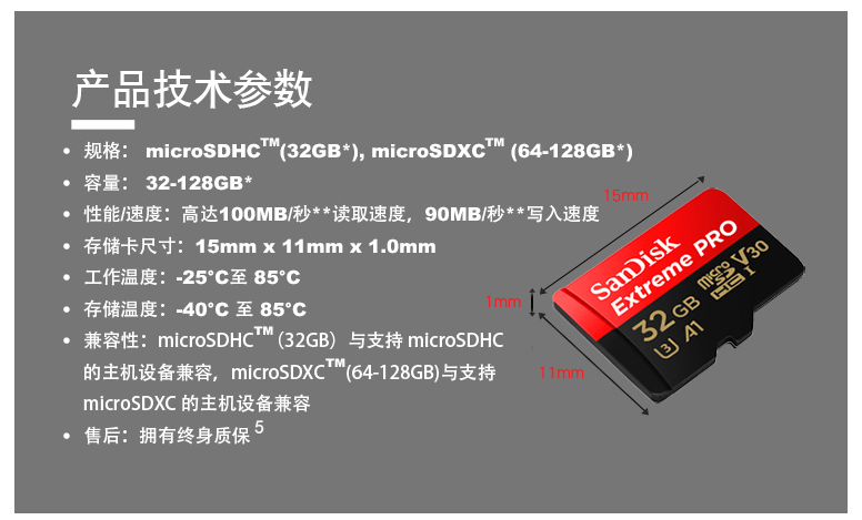 闪迪(SanDisk)32GB TF(MicroSD)存储卡 U3 C10 A1 V30 4K 至尊超极速移动版内存卡 读速100MB/s