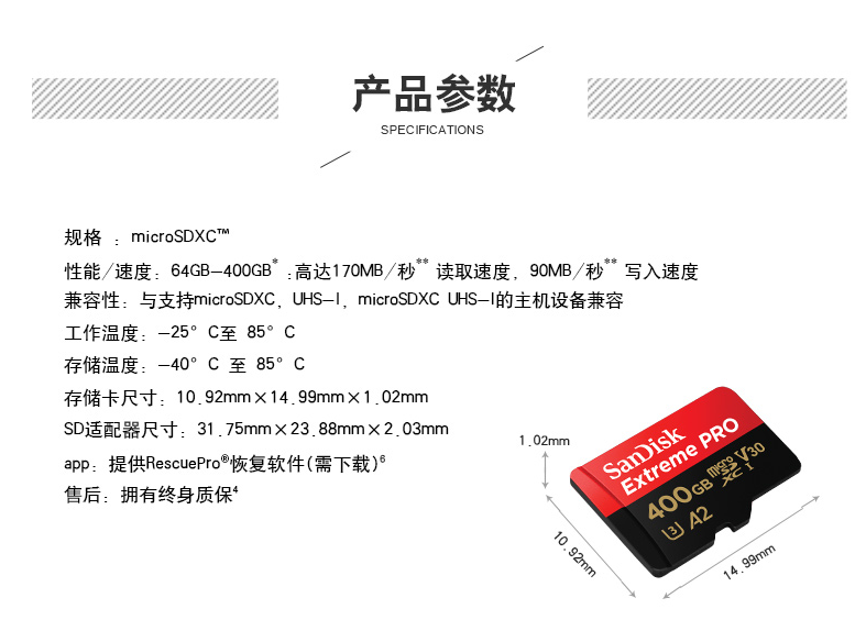闪迪(SanDisk)A2 400GB TF(MicroSD)存储卡C10 V30 U3 4K至尊超极速移动版内存卡读速170MB/s 写速90MB/s