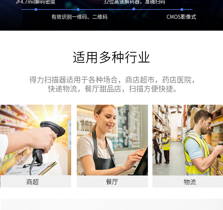 得力(deli)14952W无线一二维扫描枪 影像式餐饮零售商超仓储物流商品条码扫描枪 手机屏幕扫码收款