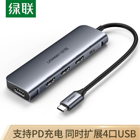 绿联 Type-C扩展坞 USB-C3.0分线器高速4口HUB集线器 笔记本电脑一拖多转换器延长线转接头拓展坞 带PD充电