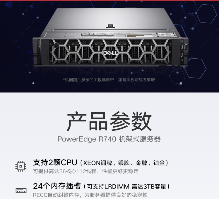 戴尔(DELL) PowerEdge R740 2U机架式服务器虚拟化主机 1*铜牌3204 6核心6线程 32G内存/3*2.4TB 10K/H330