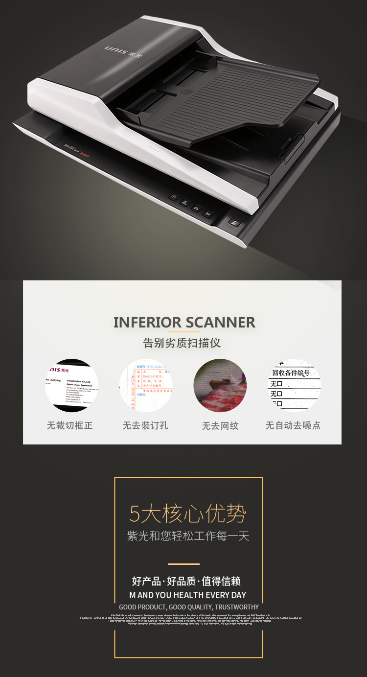 紫光(UNIS) Uniscan F2120 A4幅面扫描仪高清高速自动双面扫描仪20页40面每分钟