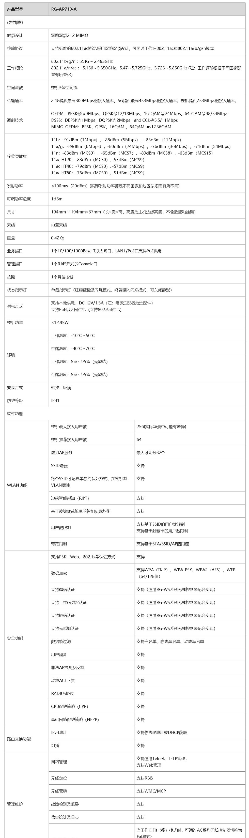 锐捷 RG-AP710-A 无线AP(单位:台)