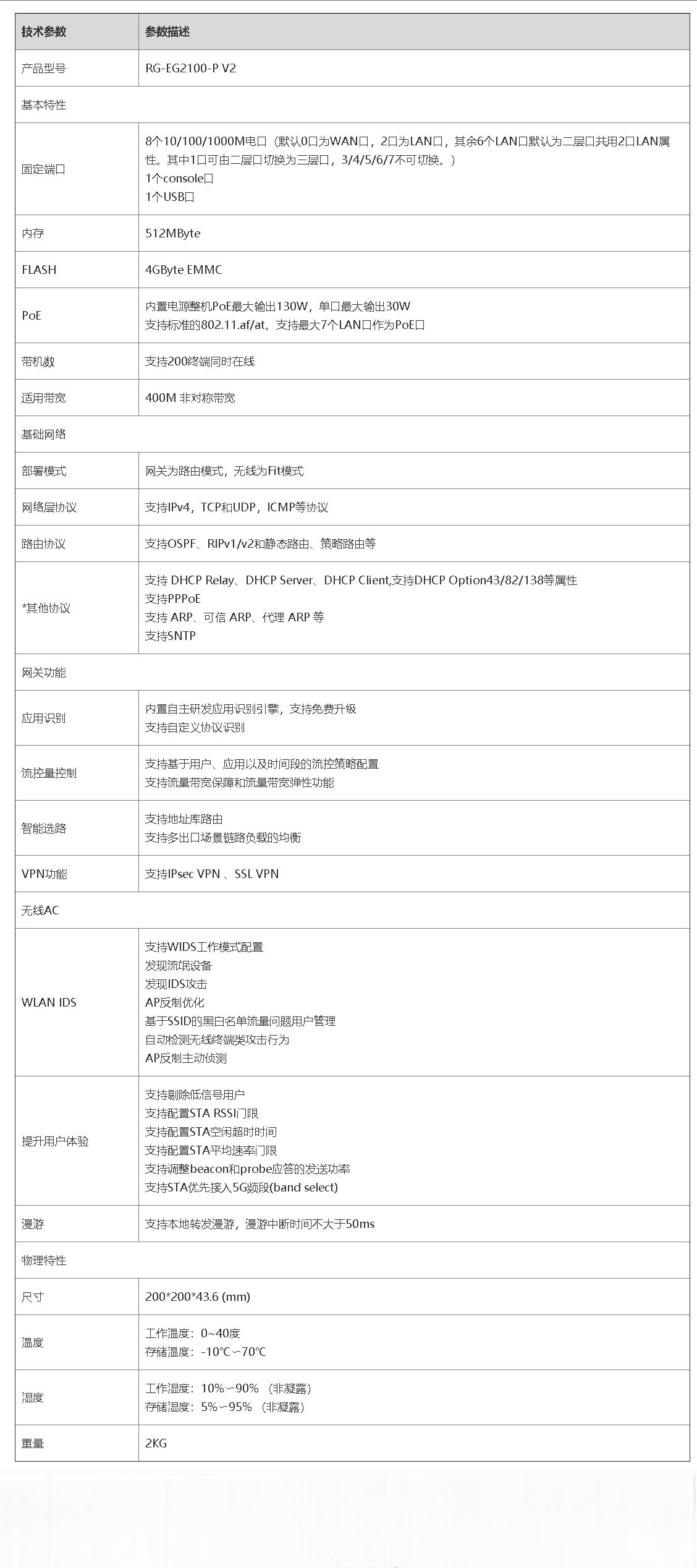锐捷网关RG-EG2100-P V2